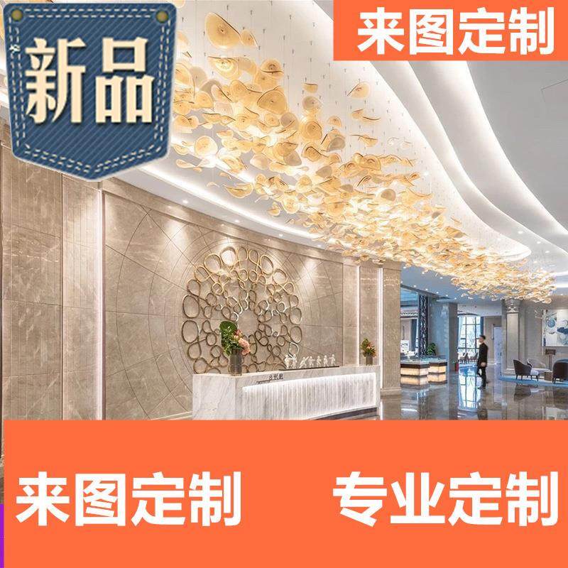 2021銷(xiāo)售中心洽談區(qū)售樓處沙盤(pán)區(qū)定制吊燈玻璃手工荷葉非標(biāo)燈玻璃