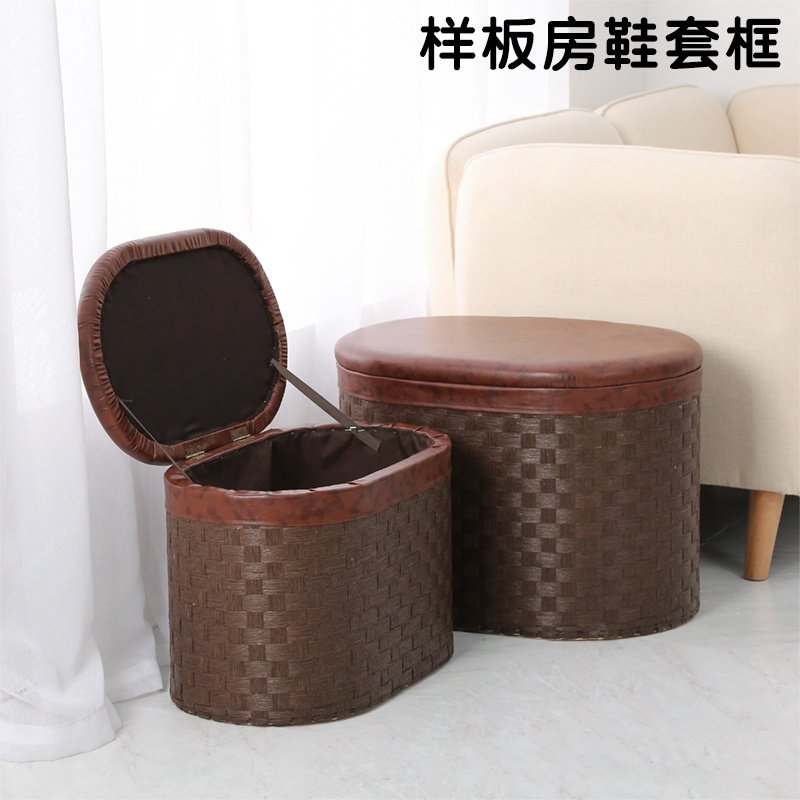 樣板房間售樓部早教中心布鞋套回收筐納集桶放置籃框箱盒竹簍橢。