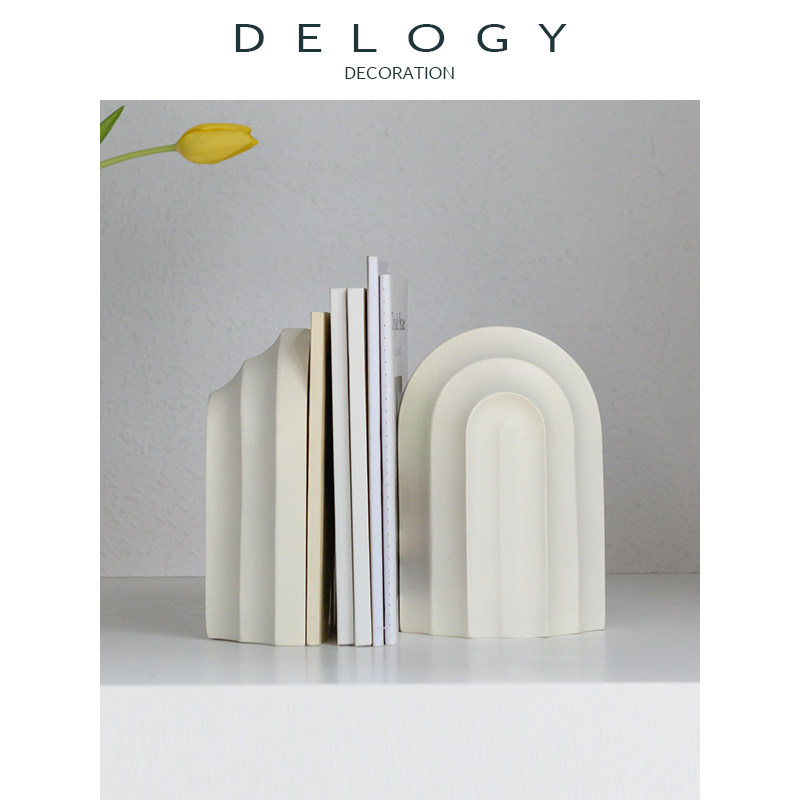 北歐極簡米白拱形書檔書靠書立擺件客廳藝術展示酒柜售樓中心裝飾