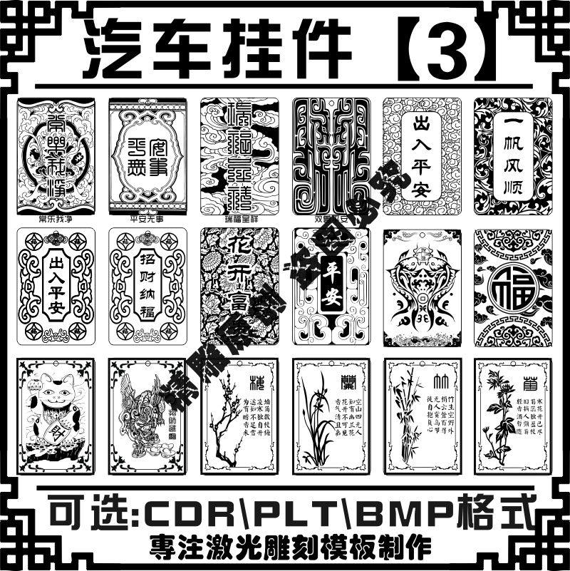 激光雕刻打標(biāo)機(jī)46平安木牌汽車(chē)掛件鑰匙扣軍牌矢量圖刻字模板素材