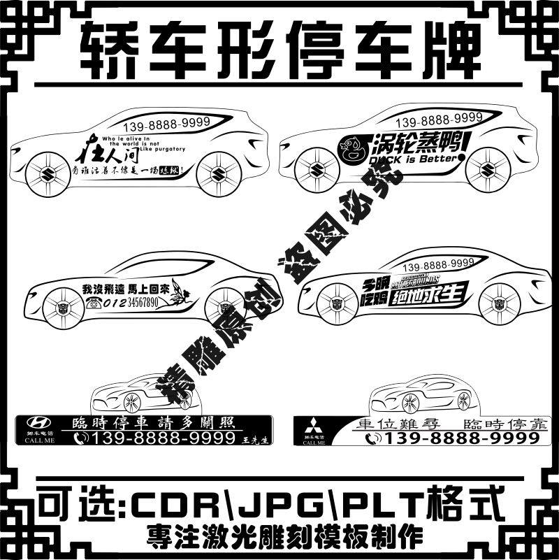 激光雕刻打標(biāo)機(jī)SUV轎車(chē)型狀臨時(shí)停車(chē)牌挪車(chē)牌刻字矢量圖模板素材