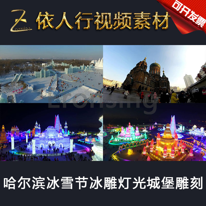 LED素材大屏幕舞臺(tái)視頻背景素材 哈爾濱冰雪節(jié)冰雕燈光城堡雕刻