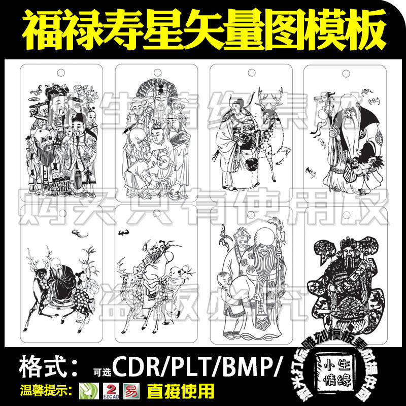 激光雕刻打標(biāo)機(jī)壽星福祿喜仙圖案灰度線描模板矢量圖素材設(shè)計(jì)文件