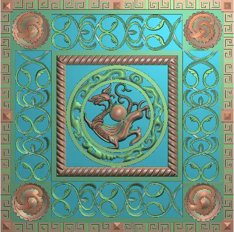 神獸青龍鏤空精雕圖窗花隔斷中式木雕石雕磚雕浮雕圖雕刻素材097