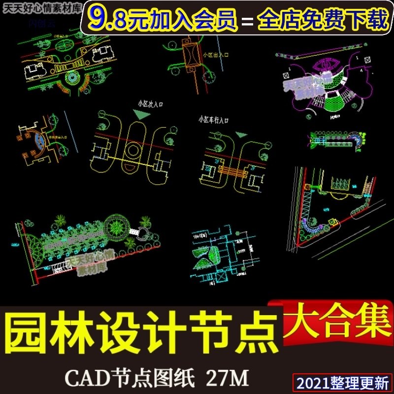 園林景觀布置平面圖設(shè)計(jì)常用廣場(chǎng)公園居住區(qū)CAD節(jié)點(diǎn)施工圖紙合集