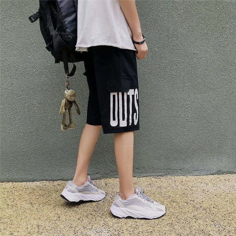 直筒工裝短褲男士夏季韓版潮流學(xué)生印花五分褲原宿bf風(fēng)百搭休閑褲