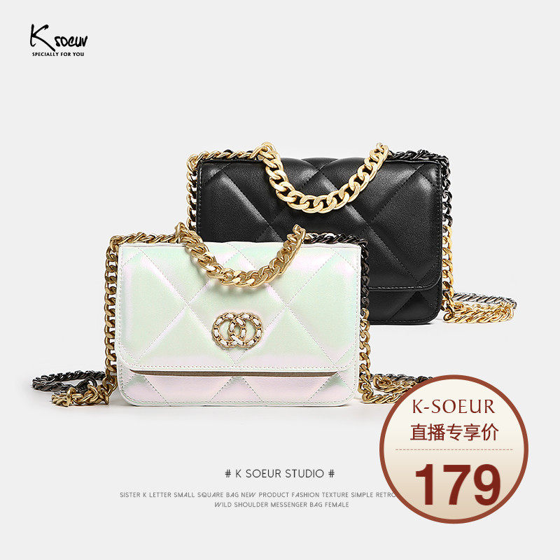 K姐 人魚姬 真皮小方包 新品兩色小眾設(shè)計(jì)菱格翻蓋單肩斜挎包女