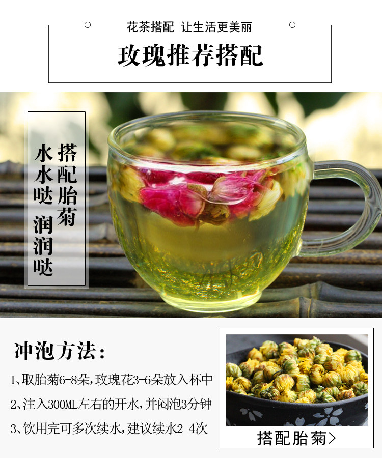 買(mǎi)1送1 陌上花開(kāi)玫瑰花茶 干玫瑰花 平陰玫瑰食用玫瑰花泡茶罐裝.價(jià)格行情
