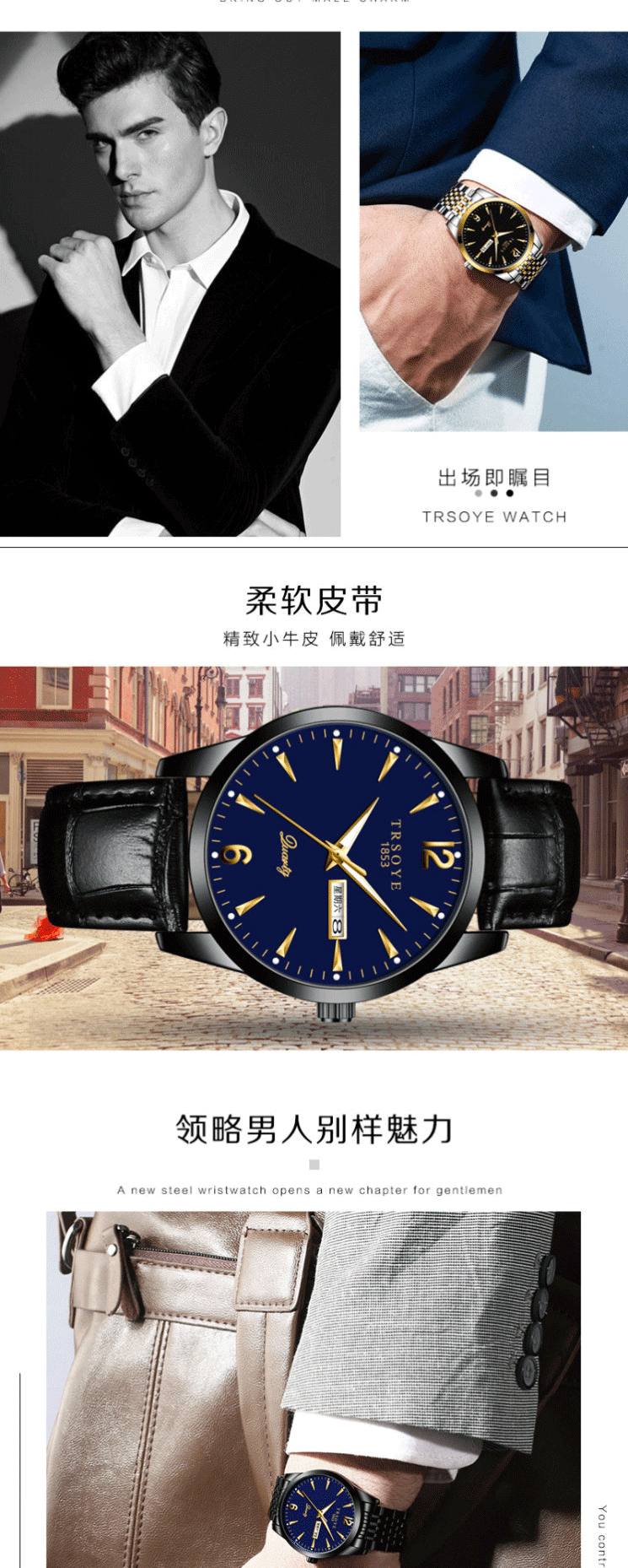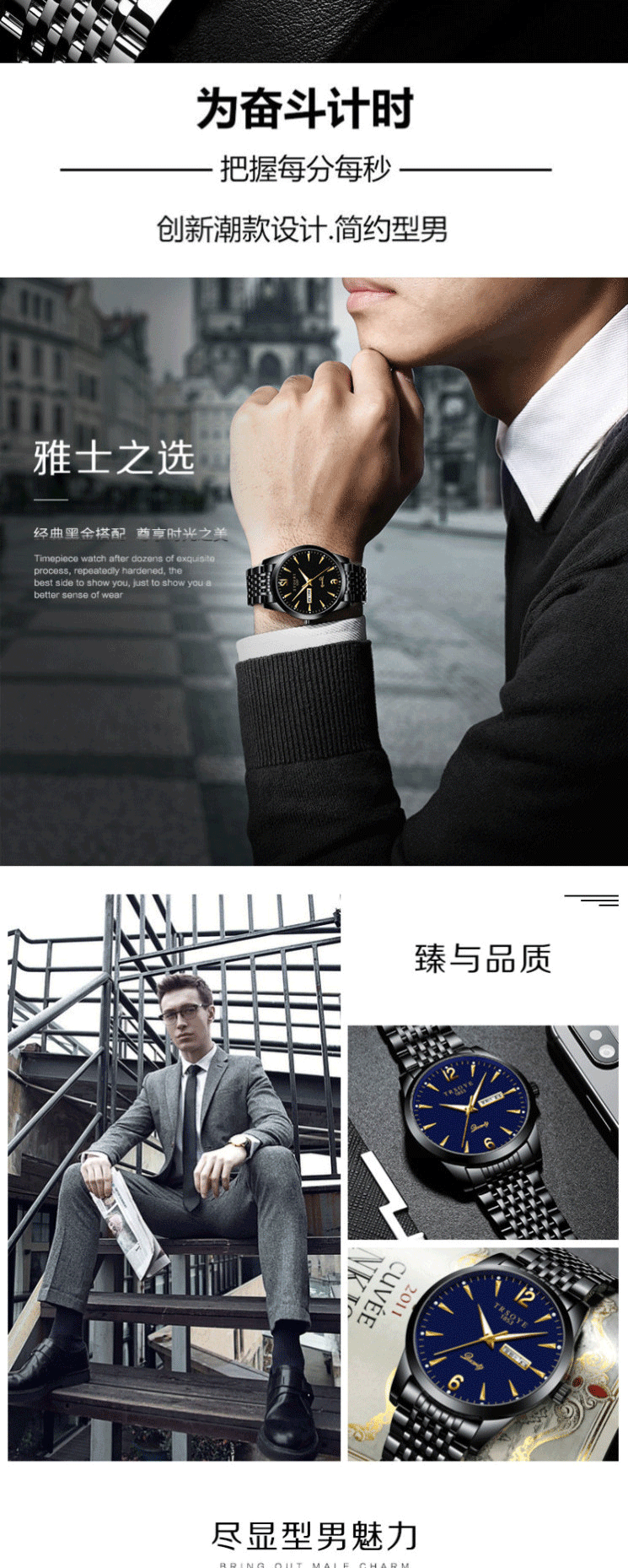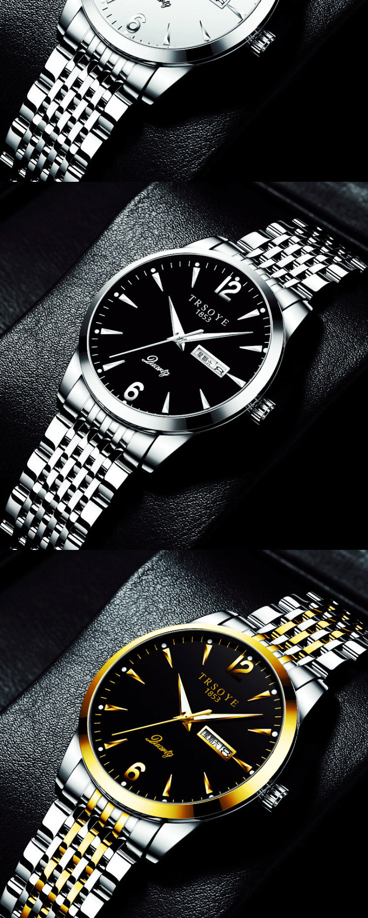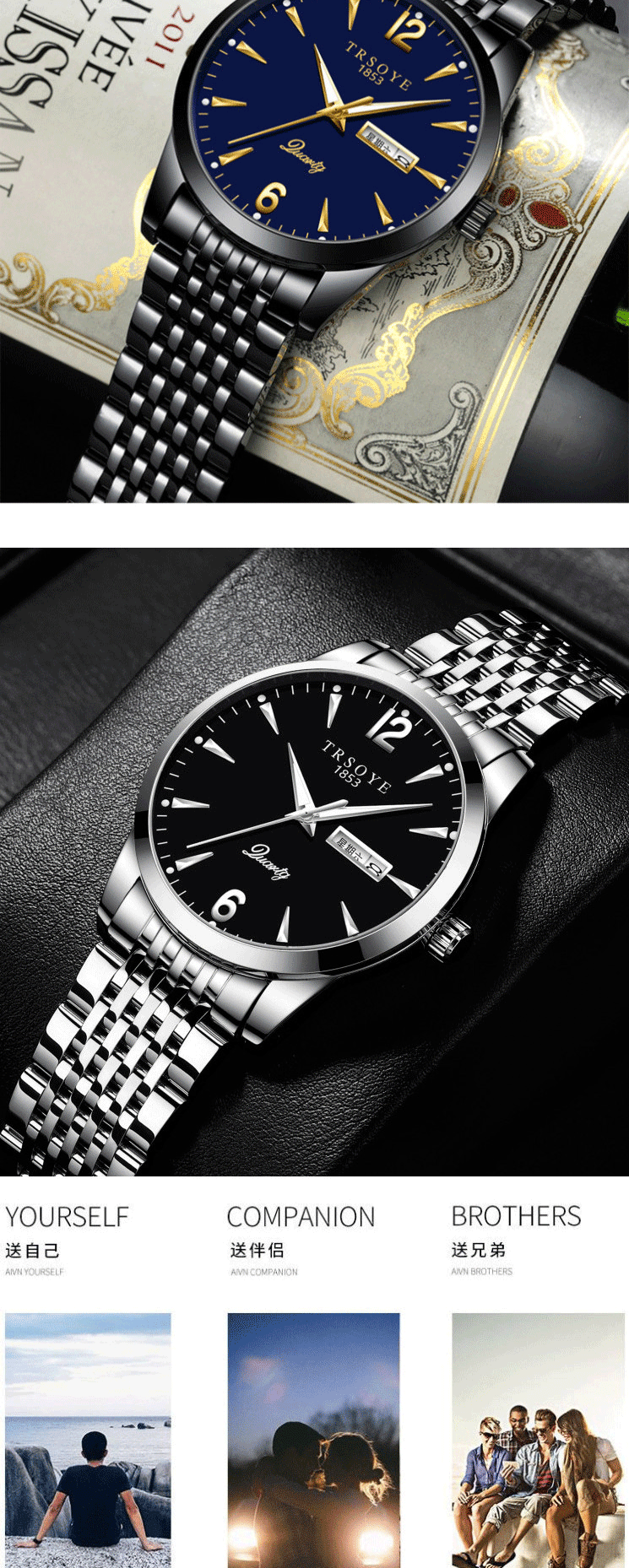 霸氣男表雙日歷機械表男士石英表防水夜光鋼帶手表商務腕表全自動推廣熱賣行情