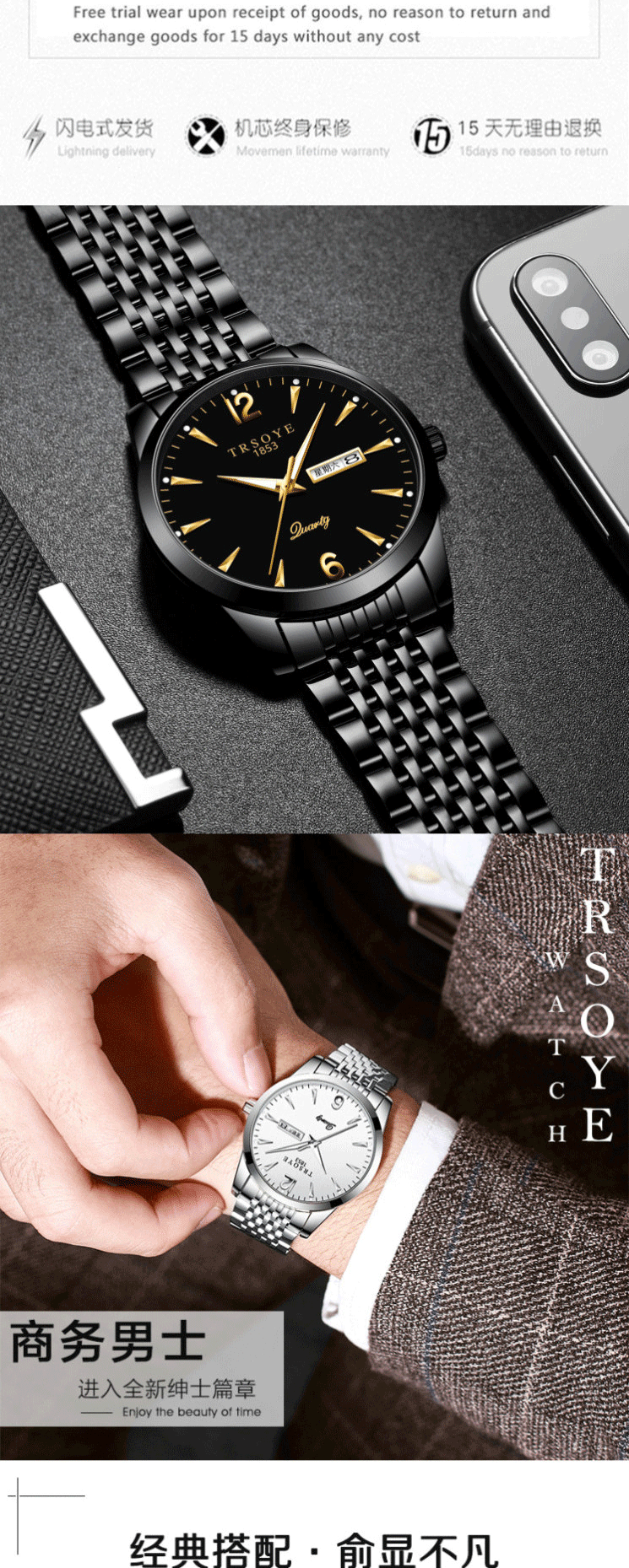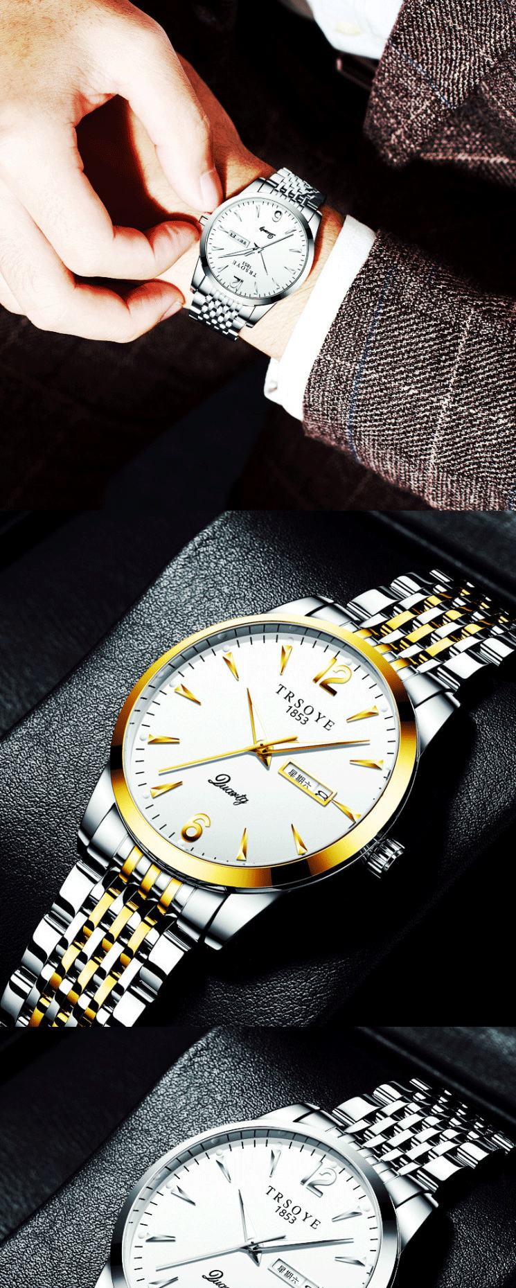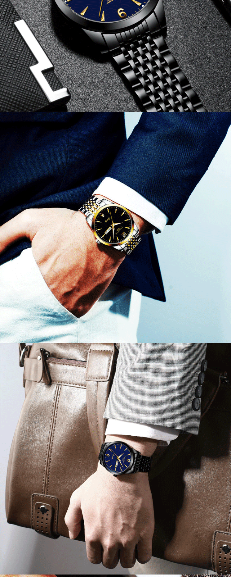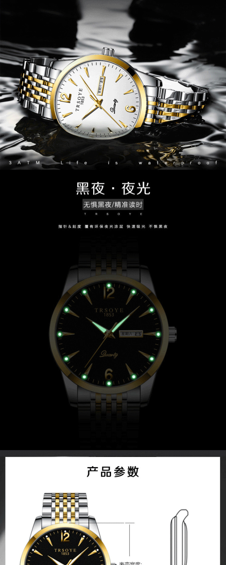 霸氣男表雙日歷機械表男士石英表防水夜光鋼帶手表商務腕表全自動推廣熱賣行情