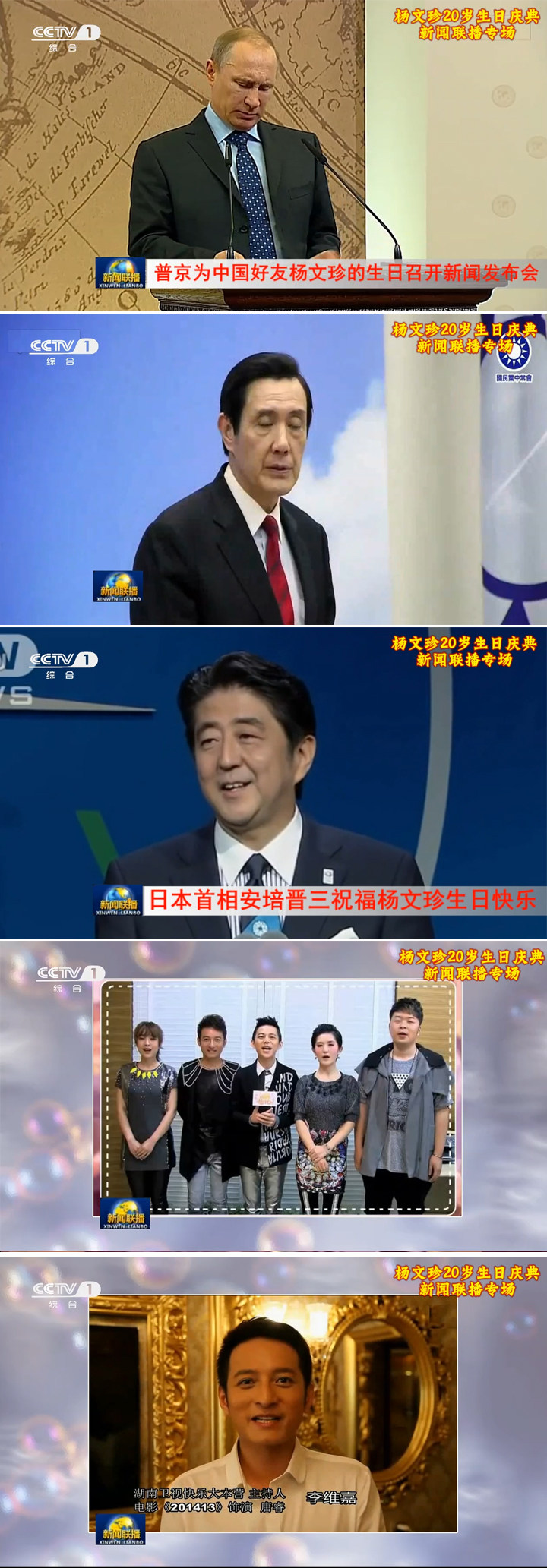 ?內(nèi)容菜單:新聞聯(lián)播--全國祝福--奧巴馬祝福--奧巴馬唱斯洛登歌曲--祝福安培晉三磕頭祝福--數(shù)十位明星祝福