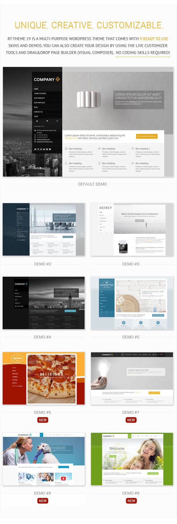 RT-THEME 19不是RT-THEME 18的升級(jí)版,正如18不是17的升級(jí)版一樣,RT19非常大特點(diǎn)就是加入了目前使用非常廣泛的可視化編輯器(Visual Composer),編輯更加直觀方便。藍(lán)鯊網(wǎng)絡(luò)bshark.taobao.com
