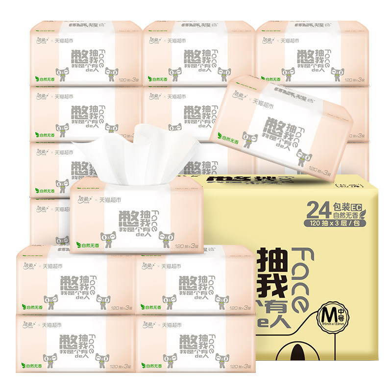 潔柔抽紙家用大包紙巾衛(wèi)生紙餐巾紙3層120抽24包實(shí)惠裝整箱批發(fā)價(jià)格行情