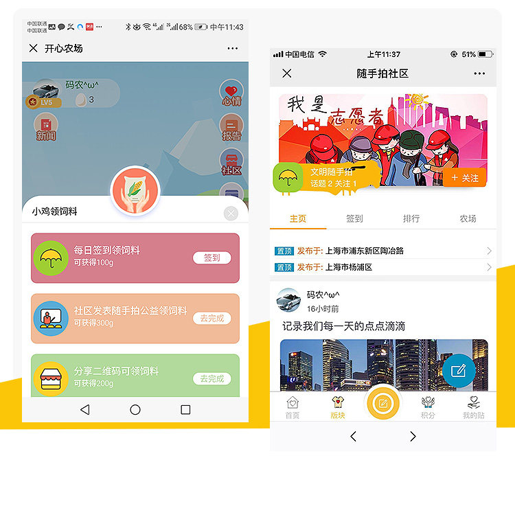 社區(qū)論壇公眾號信息系統(tǒng)圈子隨手拍志愿者積分商城農(nóng)場