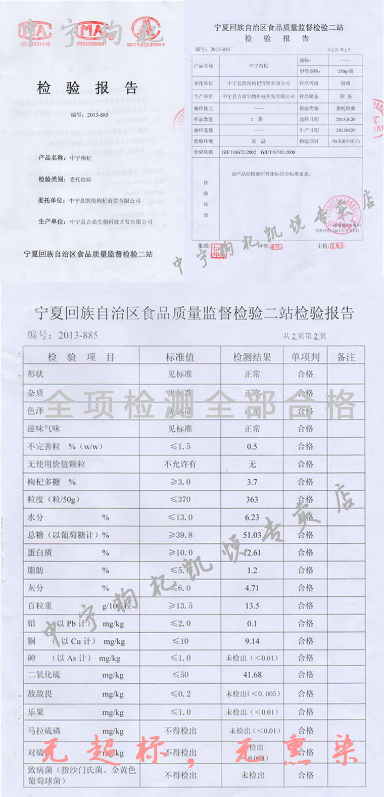 非常新檢驗(yàn)報(bào)告、枸杞全項(xiàng)23項(xiàng)檢測(cè)全部合格