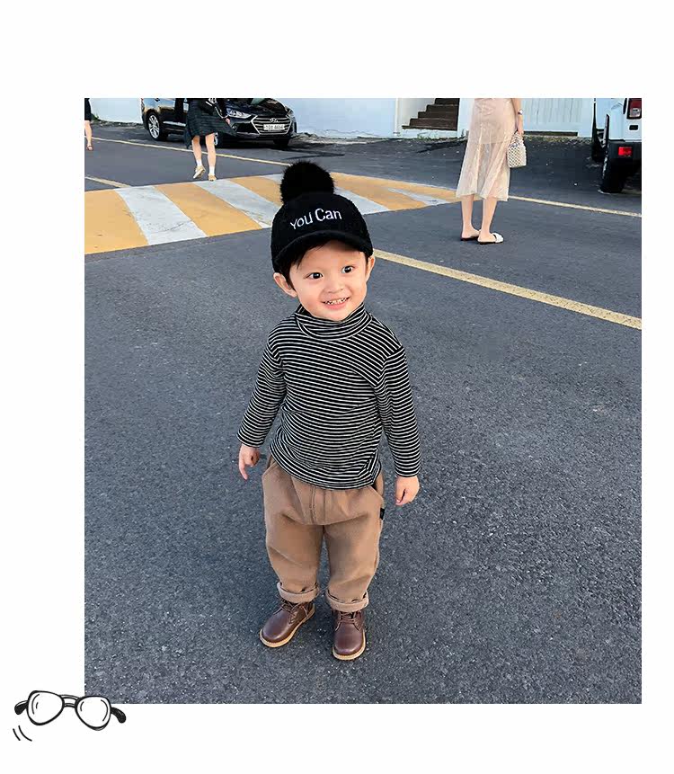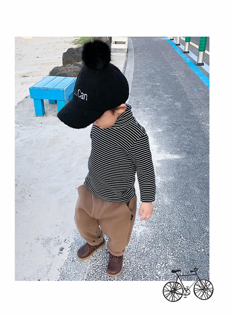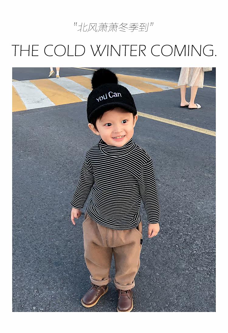 兒童秋冬高領條紋打底衫男童女嬰純棉加絨加厚長袖T恤寶寶保暖衣推廣熱賣行情
