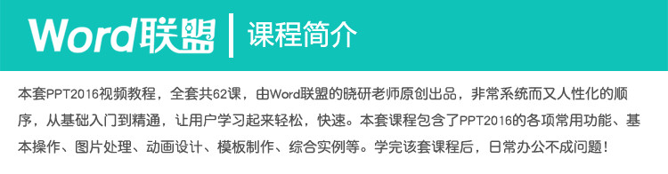 1、(咨詢特價(jià))年非常新錄制的課程,PPT2016從入門到精通全套課程 完全零基礎(chǔ)學(xué)習(xí) ,系統(tǒng)化對(duì)您進(jìn)行一個(gè)全面的培訓(xùn)。
