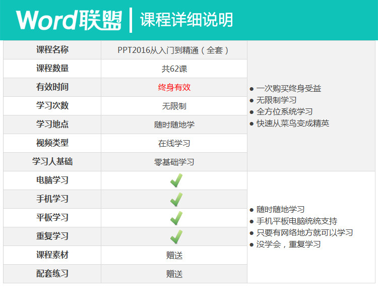 3、課程支持 電腦 、 、 平板 等任何設(shè)備學(xué)習(xí)!很少購(gòu)買很長(zhǎng)時(shí)間有效,終身學(xué)習(xí)!