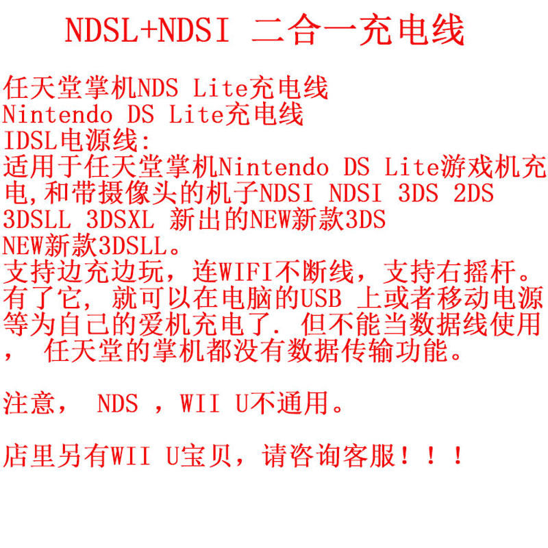 適用任天堂掌機NDSI NDSL二合一充電線NEW 3DSLL XL 2DS 電線。推廣熱賣行情