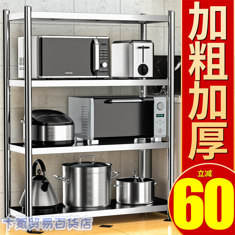 不銹鋼廚房置物架落地多層微波爐烤箱多功能儲(chǔ)物櫥柜貨架收