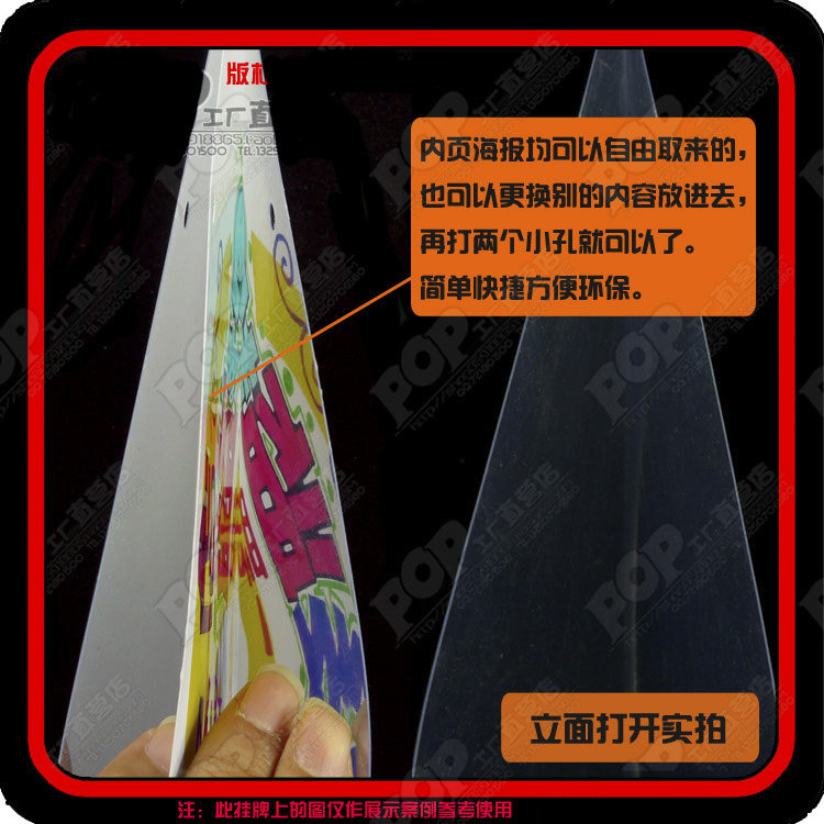 如需兩面內(nèi)容不一樣的,請(qǐng)先拍一個(gè)單面的,再去購(gòu)買一張同樣大小的圖片海報(bào)一起放在里面就可以了,