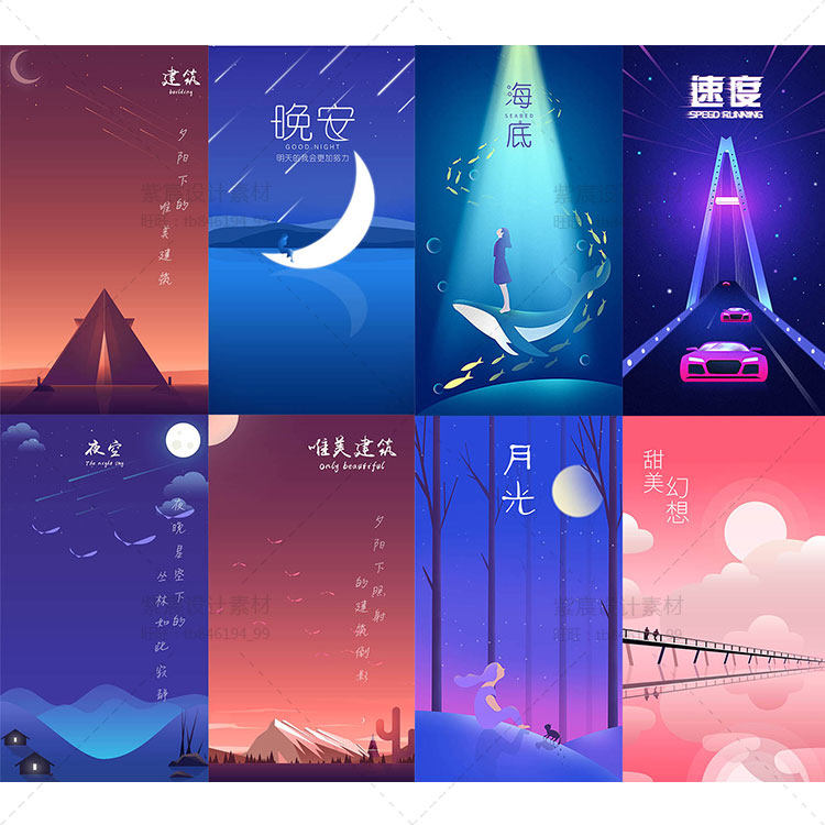 6.8(咨詢特價)扁平化UI場景風(fēng)景漸變插畫H5背景手繪海報(bào)APP啟動頁P(yáng)SD設(shè)計(jì)素材