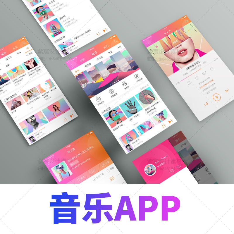2.7(咨詢特價)中文版音樂APP界面 UI設(shè)計(jì)面試作品集漸變模板PSD分層源文件素材