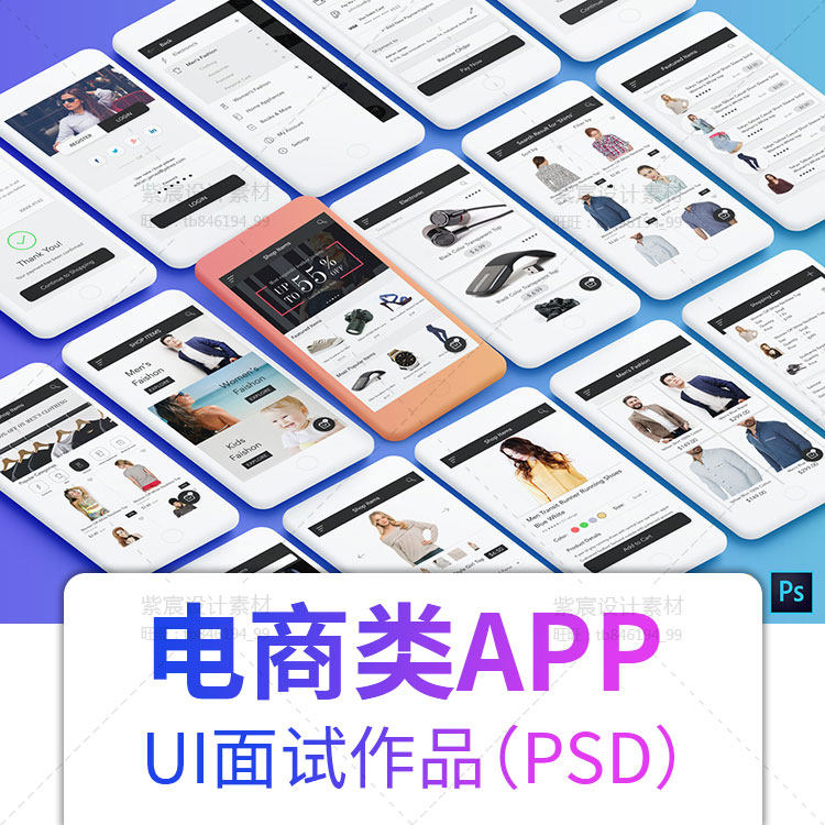 6.8(咨詢特價)整套服飾電商購物APP模板UI界面PSD設(shè)計(jì)素材學(xué)生作業(yè)面試作品集ps