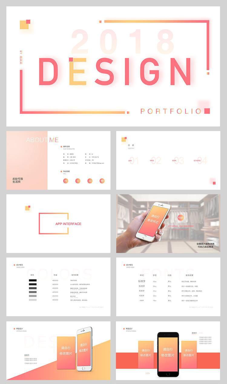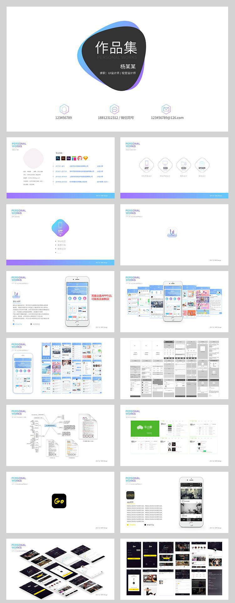 UI作品集展示模板網(wǎng)頁平面UI設(shè)計(jì)師作品簡歷面試PSD設(shè)計(jì)素材PPT