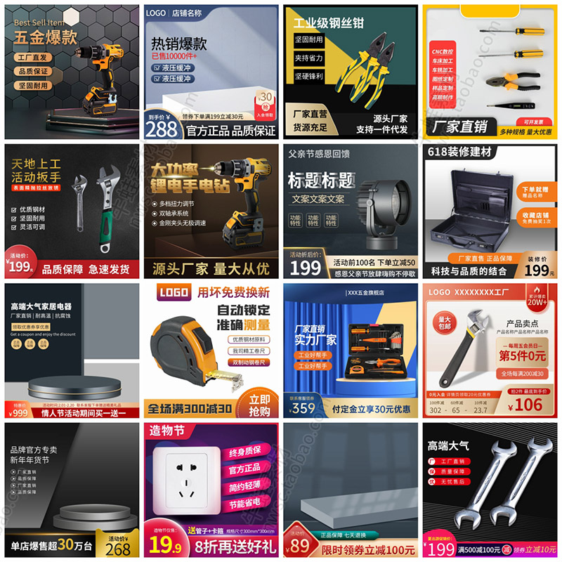 電商五金類目主圖模板淘寶天貓網(wǎng)店鋪寶貝產(chǎn)品首圖直通車創(chuàng)意圖片推廣熱賣行情