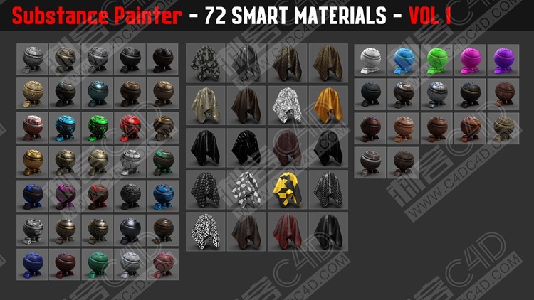 substance painter材質(zhì)球sp智能預(yù)設(shè)布料皮膚石頭/效果圖/貼圖