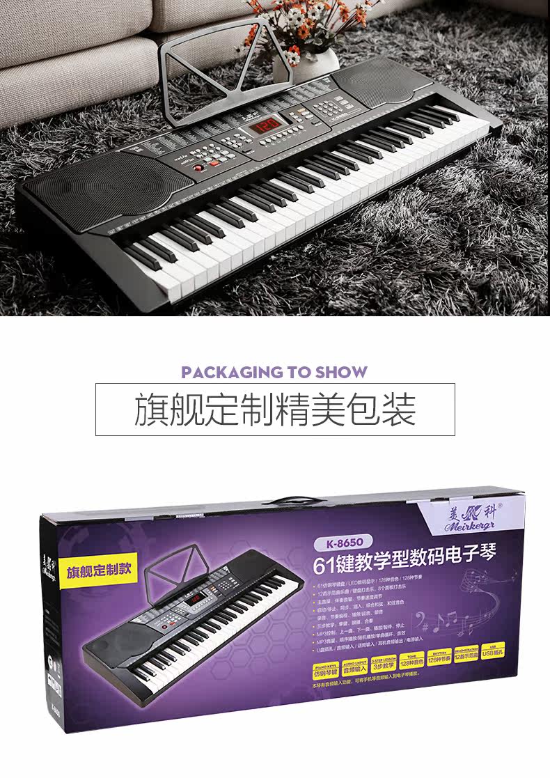 正品美科8650電子琴成人兒童初學(xué)專業(yè)61鍵鋼琴鍵智能教學(xué)琴送禮包.推廣熱賣行情