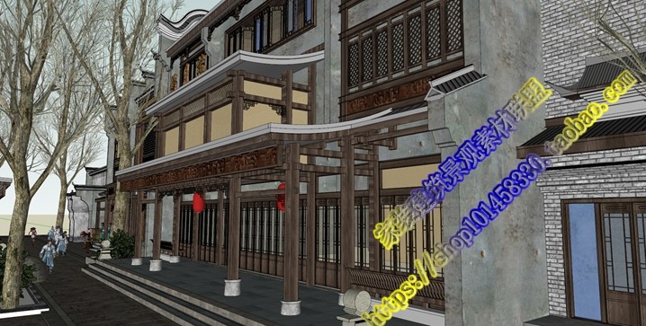su仿古建筑古代街道設(shè)施古裝人物草圖大師古鎮(zhèn)俠客商業(yè)街徽派模型價(jià)格行情