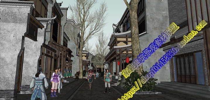 su仿古建筑古代街道設(shè)施古裝人物草圖大師古鎮(zhèn)俠客商業(yè)街徽派模型推廣熱賣行情