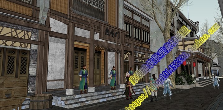 su仿古建筑古代街道設(shè)施古裝人物草圖大師古鎮(zhèn)俠客商業(yè)街徽派模型
