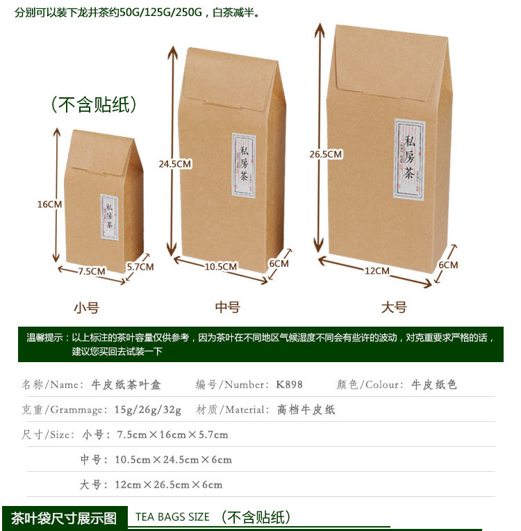 喜家牛皮紙茶葉袋小茶葉盒通用茶葉包裝盒空盒食品包裝袋牛皮紙袋