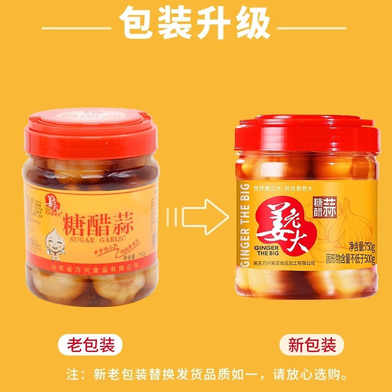 姜老大泡菜糖醋蒜腌制大蒜頭糖蒜頭農(nóng)家自制糖蒜甜蒜750g*2瓶推廣熱賣行情