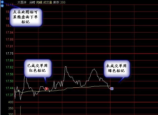 鼠標(biāo)左鍵選中下單標(biāo)記,點右鍵可進(jìn)行掛單的復(fù)制,對未成交單可直接撤單。示意圖如下: