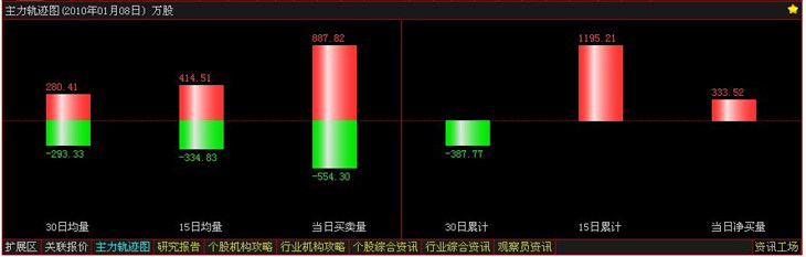 主力軌跡圖從當(dāng)日,短周期,長周期等三個維度統(tǒng)計了主力資金買賣均量(左框)和主力資金買賣累計量(右框)。