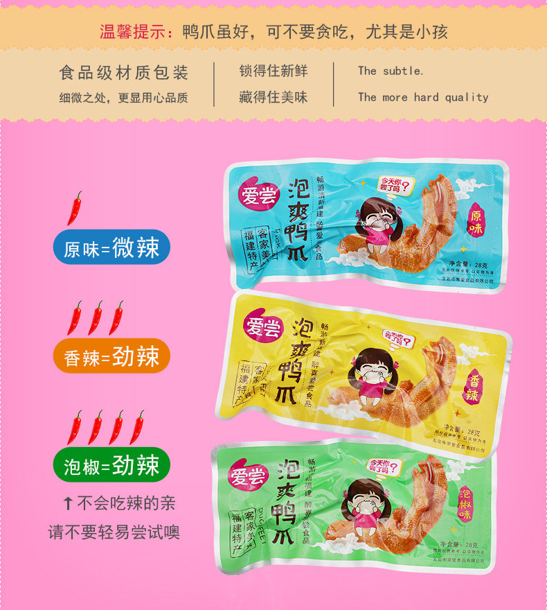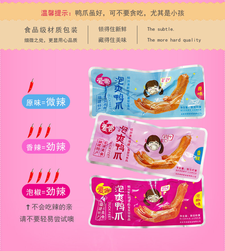 【愛嘗官方旗艦店】龍巖泡鴨爪鴨掌零食福建特產(chǎn)香辣批發(fā)泡椒泡爪.推廣熱賣行情