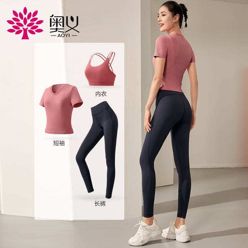 奧義瑜伽服套裝女款修身顯瘦跑步運動健身服套裝運動內(nèi)衣短袖長褲推廣熱賣行情