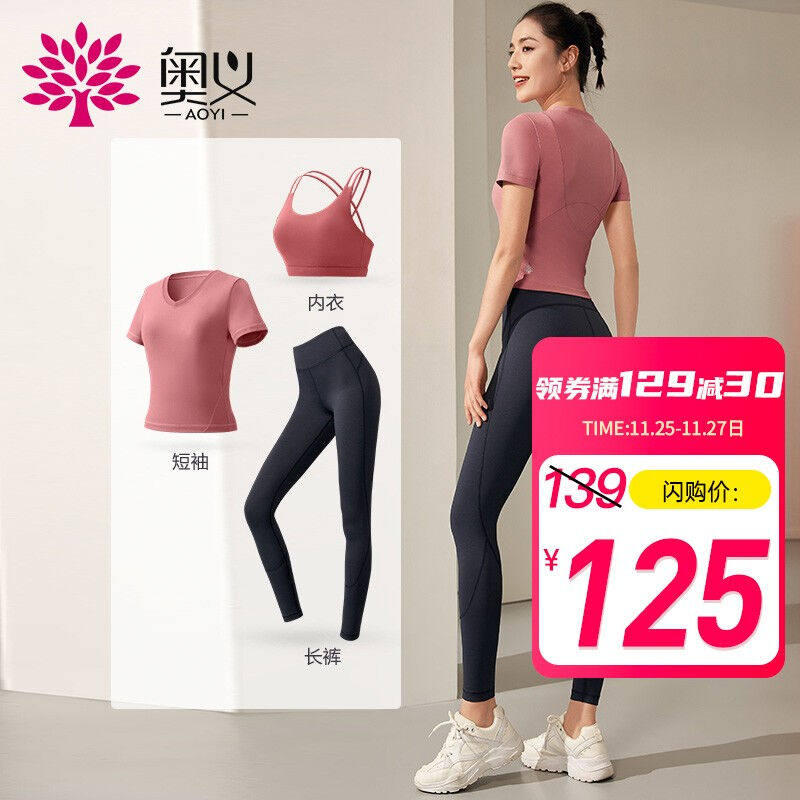 奧義瑜伽服套裝女款修身顯瘦跑步運動健身服套裝運動內(nèi)衣短袖長褲價格行情