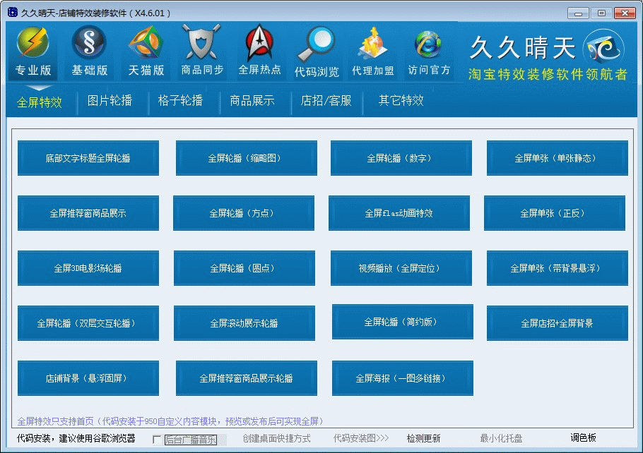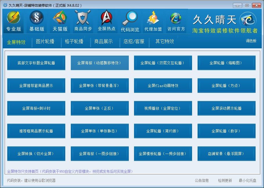 全屏特效代碼快速生成(提供多種全屏特效,自由選擇搭配安裝)