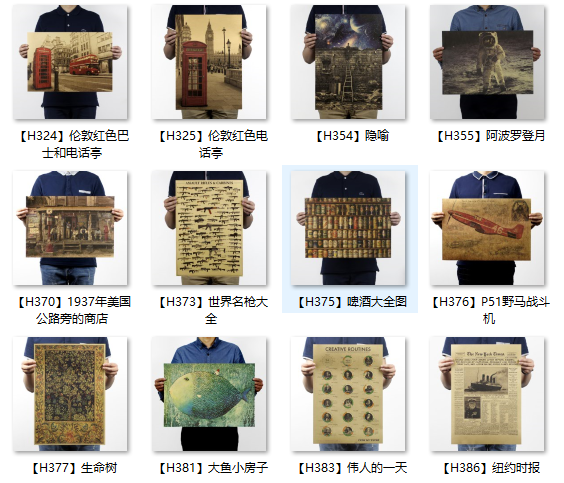 歐美風(fēng)情 復(fù)古牛皮紙海報(bào)酒吧咖啡館裝飾墻畫(huà)經(jīng)典電影海報(bào)畫(huà)貼畫(huà)價(jià)格行情