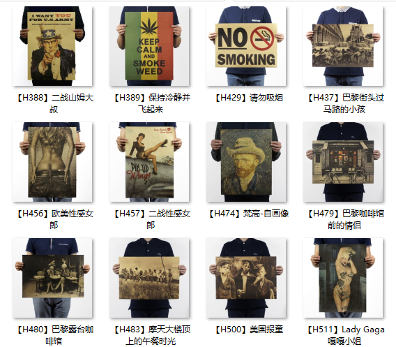 歐美風(fēng)情 復(fù)古牛皮紙海報(bào)酒吧咖啡館裝飾墻畫(huà)經(jīng)典電影海報(bào)畫(huà)貼畫(huà)
