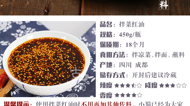 古蜀四川拌菜紅油 辣椒油 油潑辣子 涼拌雞小面調(diào)料一勺搞定450g推廣熱賣行情