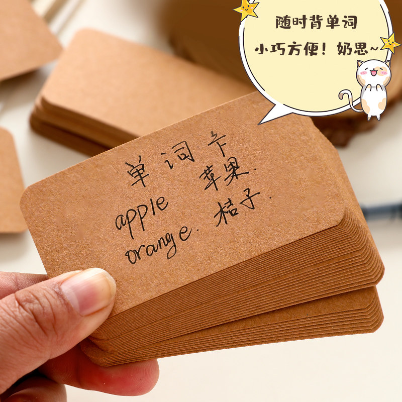 300張咔巴熊空白卡片明信片diy牛卡紙手繪涂鴉小卡片書簽留言卡圓角拼音英文單詞卡小學(xué)生生字卡白色加厚卡紙價(jià)格行情
