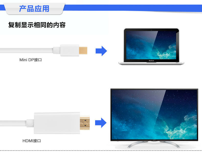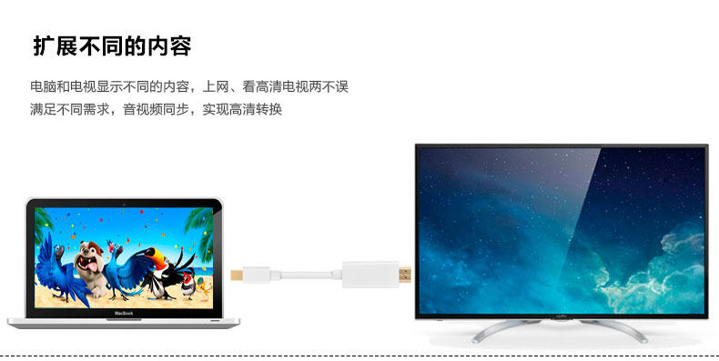 【用途】把電腦上的Mini DP接口輸出到外部擁有HDMI接口的顯示器、投影機等顯示設備,既可延伸桌面亦可同步顯示桌面