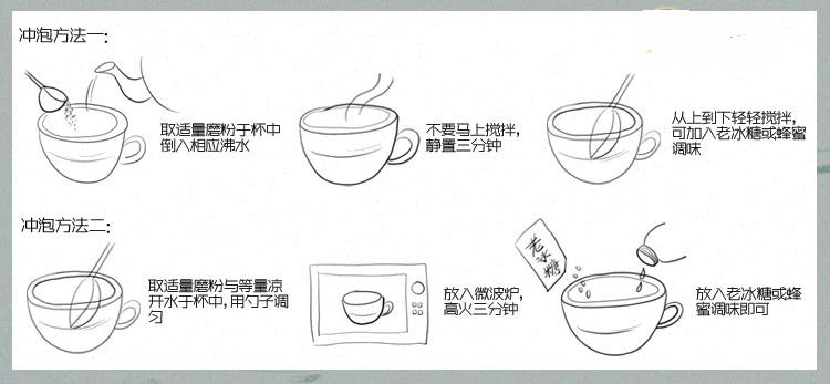 購買前請仔細看下寶貝介紹,阿靜店里的粉粉是天然的食材經(jīng)過烘烤,磨粉而成,沒有食品添加劑,現(xiàn)磨的粉粉不是很細膩,吃的時候也是有沙沙的感覺,但是這才是天然的食材的味道(買的朋友可以根據(jù)自己口味加糖、蜂蜜等調(diào)味)。為了避免不必要的浪費,追求細膩口感和喜歡香精味道的朋友就不要買了。