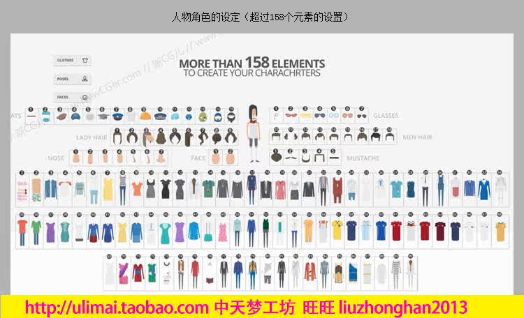 這個(gè)模板太強(qiáng)大了,可操控性十分強(qiáng),每個(gè)人物的服飾表情都有10-30種搭配,基本上能完成所有可能的場景了,除此之外,還包含
